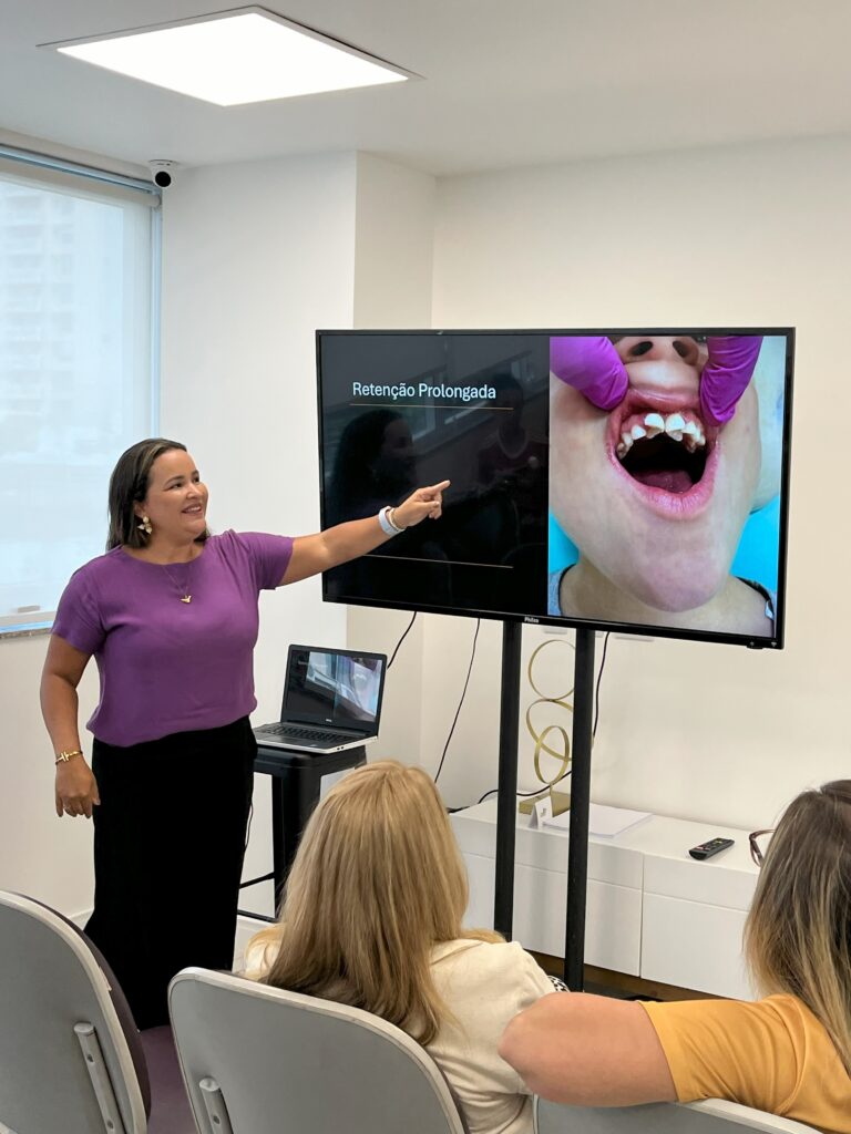 A Dr.ᵃ Caroline Diniz também esteve conosco para orientar as famílias dos nossos CELetinhos, pacientes do Espaço CEL, sobre a importância da saúde bucal. Além de compartilhar boas práticas de higiene oral, ela realizou uma demonstração prática de escovação, garantindo que todos aprendessem de forma didática.