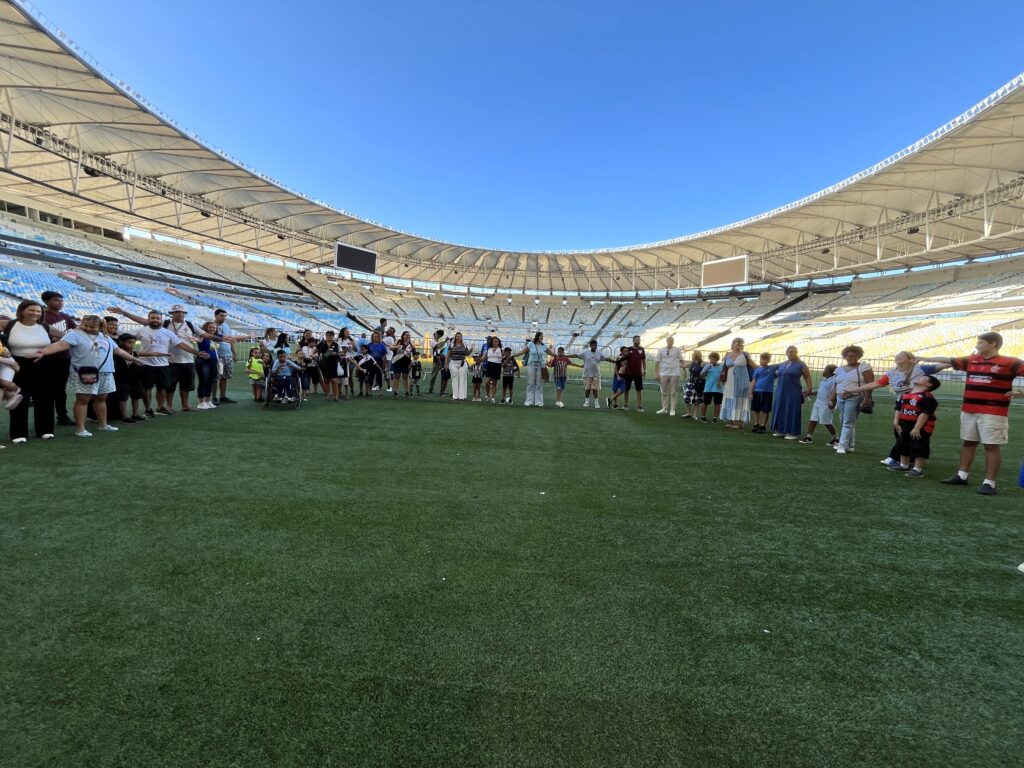 Durante o evento, participamos de um tour exclusivo pelo Maracanã, explorando um dos maiores símbolos do futebol mundial. A emoção tomou conta ao conhecer os bastidores do estádio, pisar no gramado e sentir a energia desse palco histórico do esporte brasileiro.